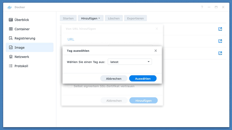 Benutzeroberfläche unter http://<synology-ip>:8082 aufgerufen werden. Dort registriert