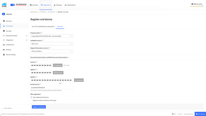 die richtige Region eingestellt ist. Steht hier nicht EU868, muss diese noch mit
